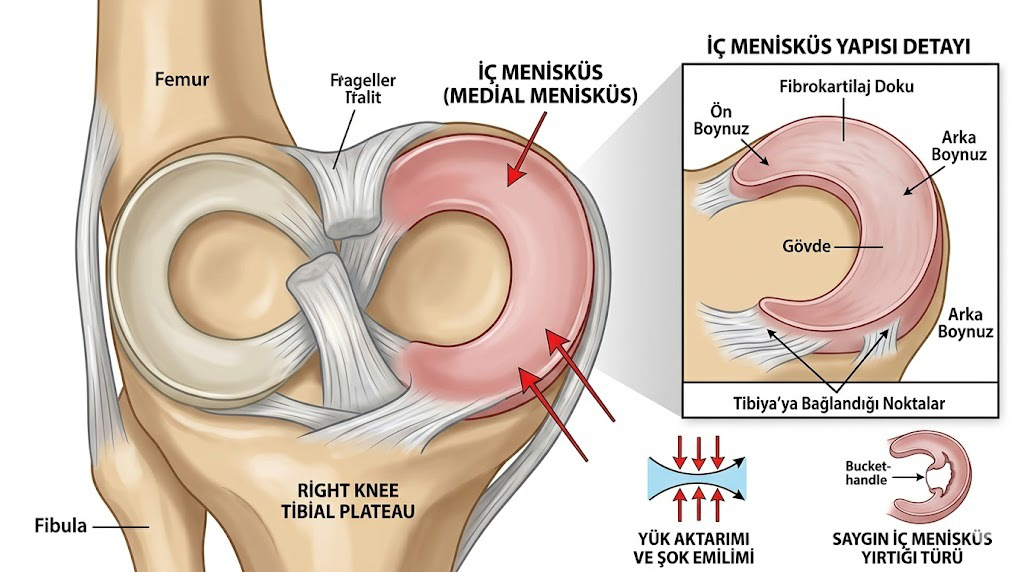 İç Menisküs Nedir? İç menisküs (medial menisküs), diz eklemi içerisinde femur (uyluk kemiği) ile tibia (kaval kemiği) arasında yer alan yarım ay şeklinde kıkırdak yapıdır. Dizde bulunan iki menisküsten biri olan iç menisküs, dış menisküse göre daha az hareketlidir ve dizin iç tarafında konumlanır. Bu daha sabit yapı, onu travmalara karşı daha hassas hale getirir […]