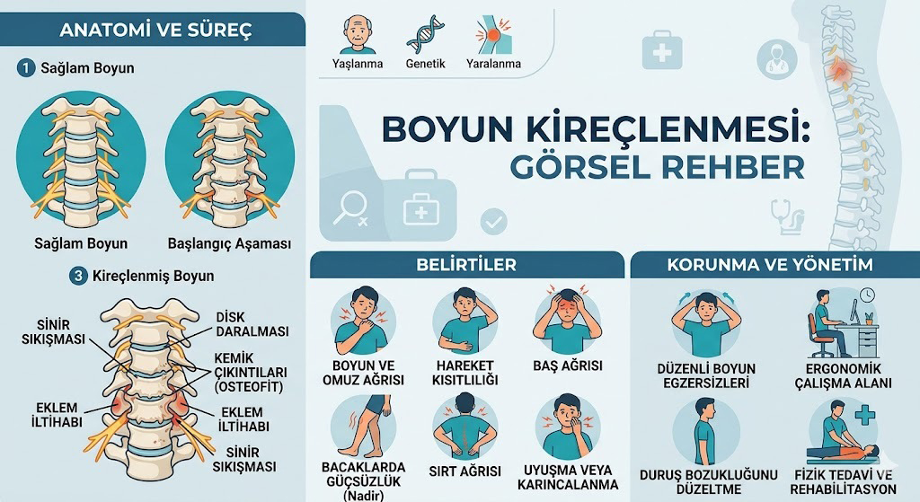 Boyunda Kireçlenmesi Nasıl Geçer? Boyun kireçlenmesi, tıbbi adıyla servikal spondiloz; boyun omurları, diskler ve eklem yapılarında zamanla gelişen dejeneratif değişikliklerin bütünüdür. Bu durum tamamen “yok olan” bir hastalık değildir, ancak doğru tedavi ve yaşam tarzı düzenlemeleri ile büyük ölçüde kontrol altına alınabilir. Tedavinin temel amacı ağrıyı azaltmak, hareket kabiliyetini korumak ve sinir yapılar üzerindeki baskıyı […]