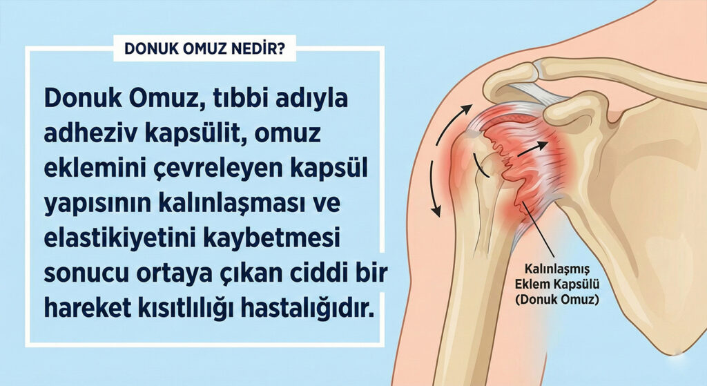 Donuk Omuz, tıbbi adıyla adheziv kapsülit, omuz eklemini çevreleyen kapsül yapısının kalınlaşması ve elastikiyetini kaybetmesi sonucu ortaya çıkan ciddi bir hareket kısıtlılığı hastalığıdır. Bu durum yalnızca ağrıya neden olmakla kalmaz, aynı zamanda omuz ekleminin fonksiyonel kullanımını da önemli ölçüde sınırlar. Günlük yaşamda basit kabul edilen giyinme, saç tarama, bir eşyaya uzanma gibi hareketler dahi hasta […]